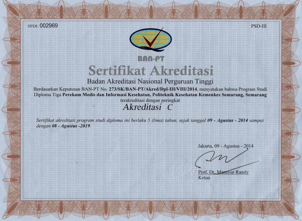 Pencapaian terbaik ini merupakan bukti bahwa Program Studi Rekam Medis dan Informasi Kesehatan Program Diploma Tiga Poltekkes Kemenkes Semarang mengedepankan mutu dalam pelaksanaan pelayanan pendidikan tinggi.