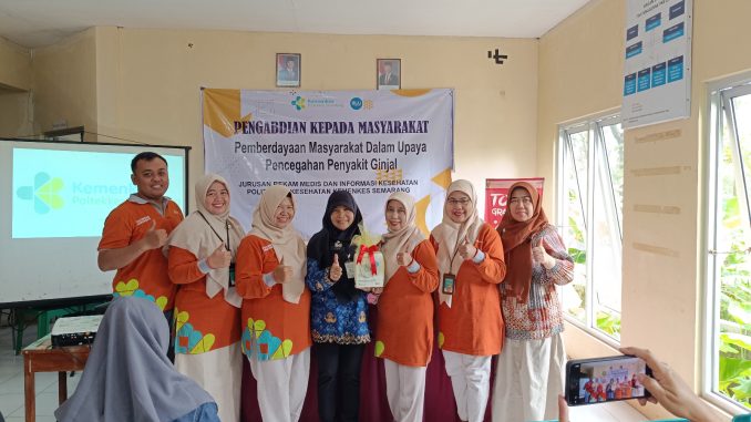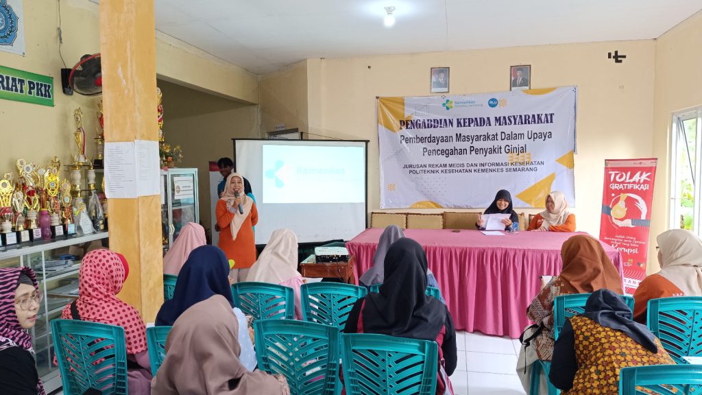 Selasa, 17 Juni 2025 – Tim dosen dari Jurusan Rekam Medis dan Informasi Kesehatan (RMIK) Poltekkes Kemenkes Semarang kembali melaksanakan kegiatan pengabdian kepada masyarakat yang kali ini bertempat di Kelurahan Gedawang, Kecamatan Banyumanik, Kota Semarang. Mengangkat tema “Pemberdayaan Masyarakat dalam Upaya Pencegahan Penyakit Ginjal”, kegiatan ini bertujuan meningkatkan pengetahuan dan kesadaran masyarakat, khususnya kader kesehatan, terkait pentingnya deteksi dini dan pencegahan penyakit ginjal.